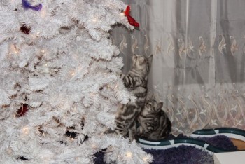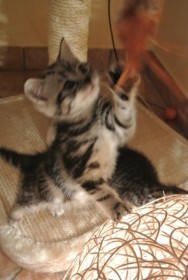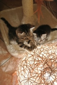 (Fred mit Schwesterchen Fuchur, untersuchen mal die Funktionen der Lampe; während Freya, Fleur und Fenja den großen Kratzbaum ausprobieren ;-)) Hier geht`s zu unseren F-lies