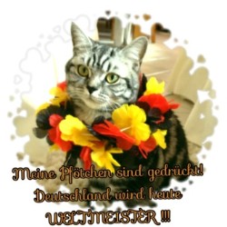 13.07.2014 Ja ja, auch unsere Vierbeiner sind (mehr oder weniger ;-)) im Fußballfieber! Wir wünschen allen Deutschlandfans einen schönen und hoffentlich, von Erfolg gekrönten Fußballabend! Deutschland wird WELTMEISTER ;-)