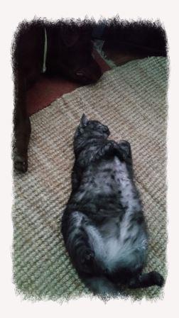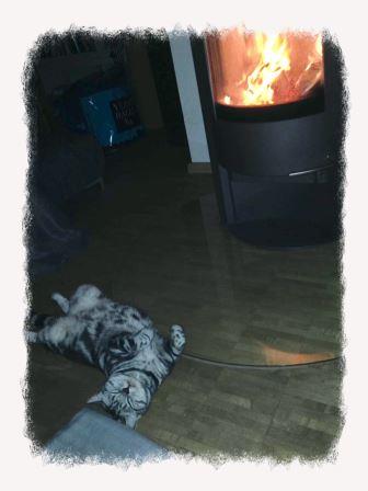 Hier lässt sich unsere Fellnase Pippa (li. im Bild) mal schön den Pelz wärmen ;-)