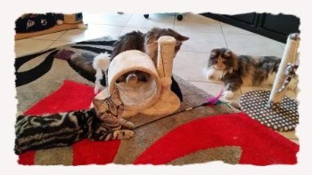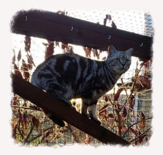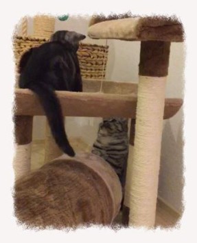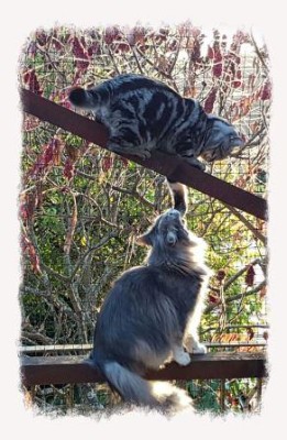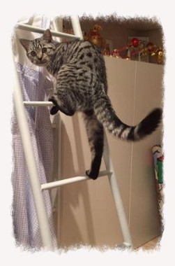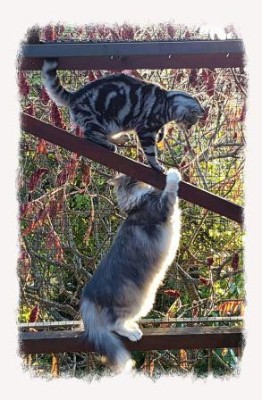 11.12.2016 Auch unser Männlein Marty, hat sich gut im neuen Zuhause eingelebt. Eigentlich dürfen die Fellnäschen hier gar nicht hoch, aber schlechte Marotten schaut man sich nicht nur besonders gut, sondern auch besonders schnell ab ;-) Und so musste unser Marty doch mal schauen, welches Spiel seine Schwestern Dahlia und Delacour (jetzt Dahla und Neela) da oben immer spielen ;-)