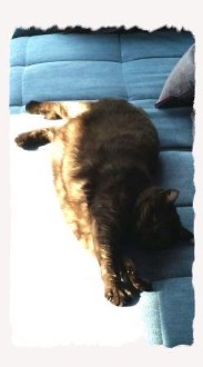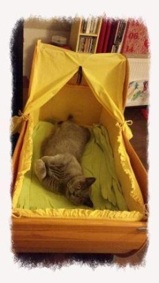 Unsere Josie, muss aber auch immer alles ausprobieren... hier versucht sie sich gerade, als Katzenfisch!