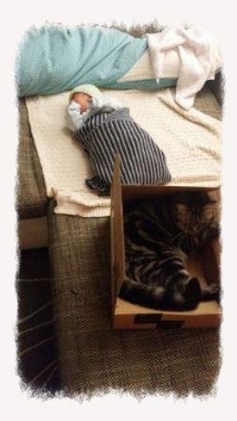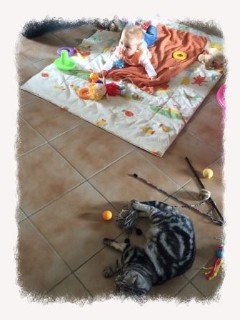 Vielleicht erkundet er auch nur noch schnell ein paar Schlafmöglichkeiten, die sein kleiner Bruder Mogli noch nicht erreicht... denn der wird am Samstag dort Einzug halten! Die letzten Tage mit unserem kleinen Männlein, müssen wir daher voll und ganz auskosten ;-)