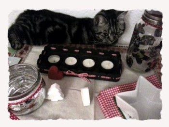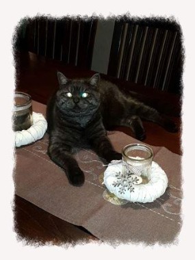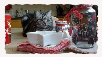Auch Jacob (jetzt Fin) beteiligt sich an der Tischdekoration. Er findet es auch echt gelungen!!! Weshalb er auch, das totale Unverständnis seiner Dosine, so überhaupt nicht verstehen kann ;-)