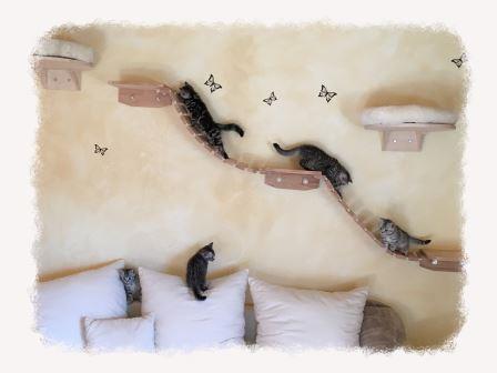 Unser Katzenzimmer: mit Schlafcouch für die längeren Nächte ;-) ,großem Separee für die Mini-Tiger und Spielzimmer für die jungen Wilden; sowie unser gesichertes Katzenparadies auf dem Balkon: